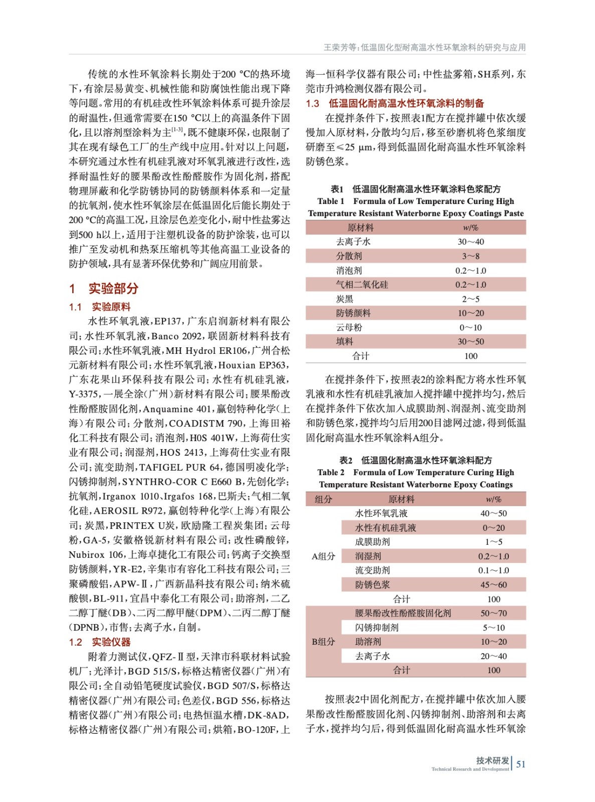低溫固化型耐高溫水性環氧涂料的研究與應用