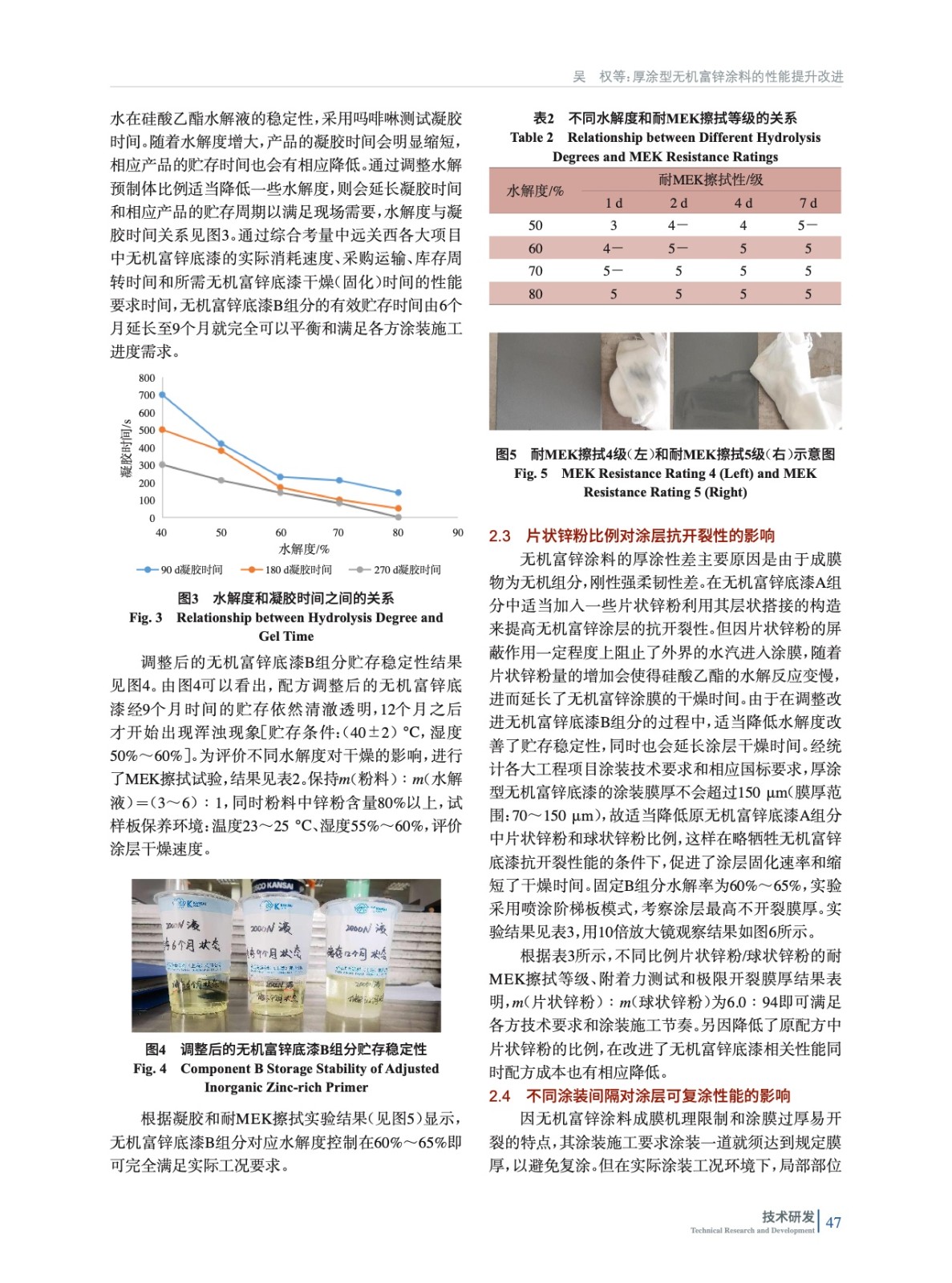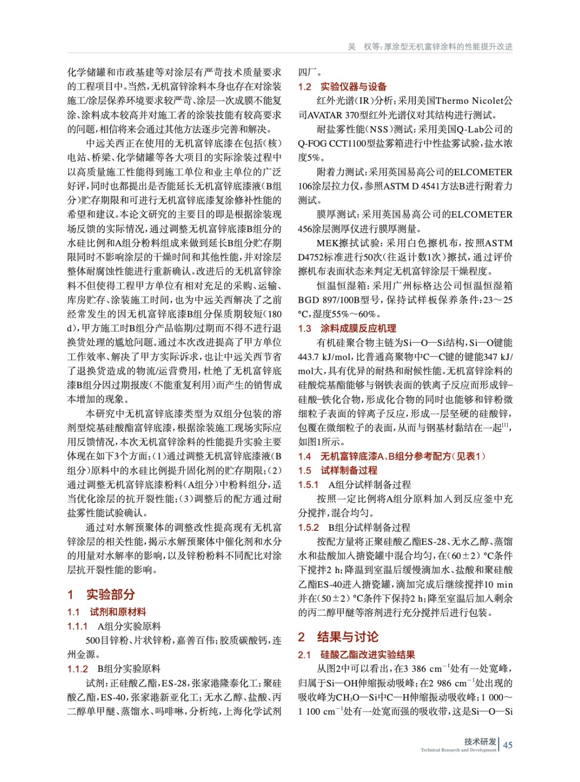 主要研究無機富鋅涂料的性能提升,探索制備具有耐腐蝕性強、厚涂不開裂和貯存穩定性好并在一定條件下可復涂同種涂料的高性能無機富鋅底漆。采用多種實驗測試方法對研制的無機富鋅涂層性能進行分析檢測,最終得到滿足各大項目現場實際需求的、各項性能優異的無機富鋅產品。