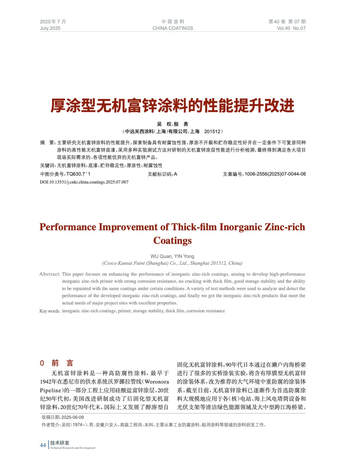 本文系作者@吳 權,殷 勇 授權中國涂料網發表,并經中國涂料網編輯,未經允許不得轉載,如需轉載請聯系chinacoatingnet@vip.163.com
