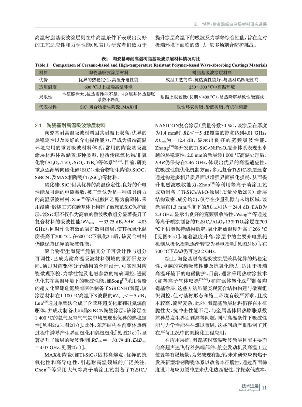 耐高溫吸波涂層材料研究進展