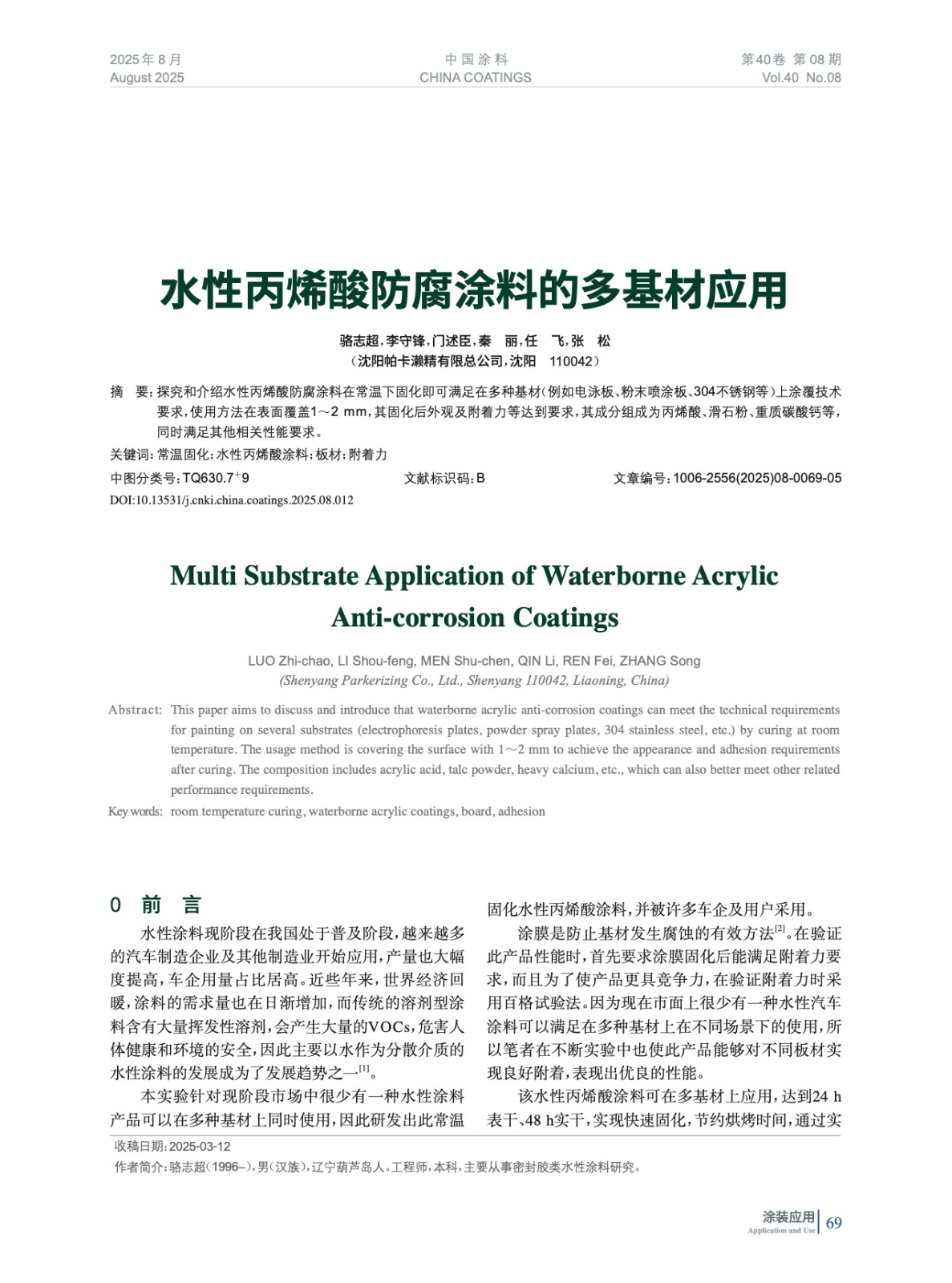 發(fā)表于2025-12-11 9:49:10| 次閱讀| 來(lái)源中國(guó)涂料| 作者駱志超,李守鋒,門述臣,秦 麗,任 飛,張 松