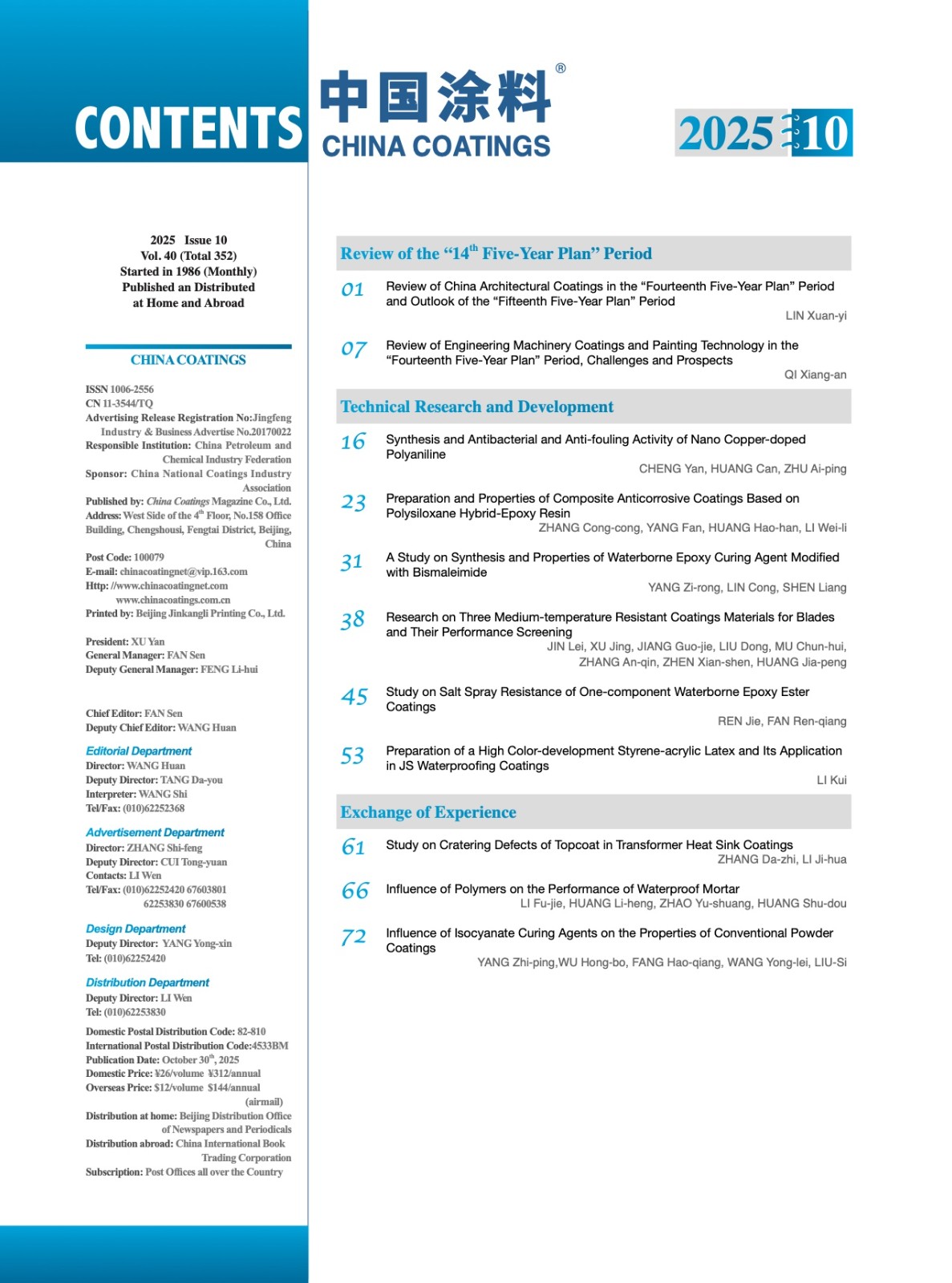 主辦:《中國涂料》雜志社有限公司 電話:010-62252368