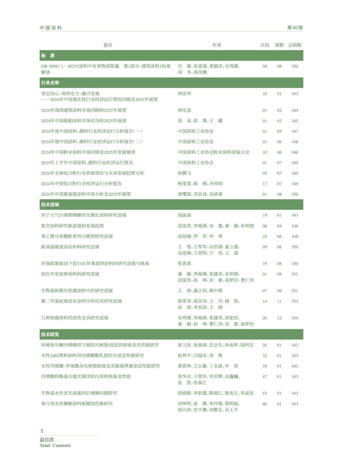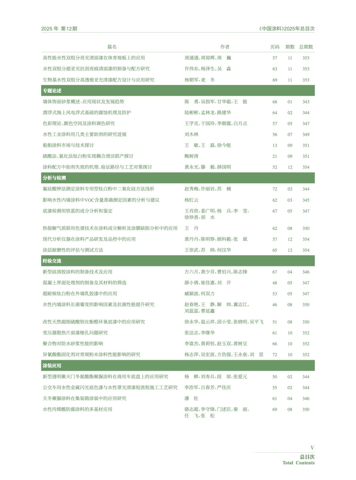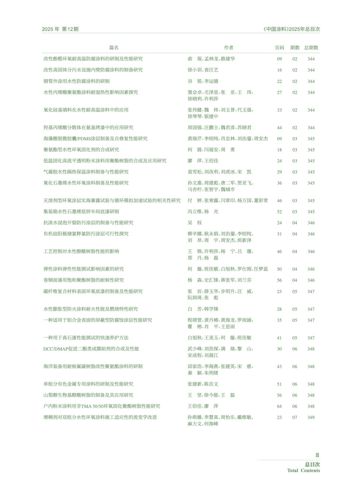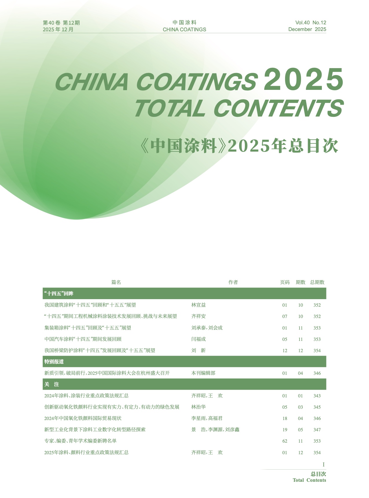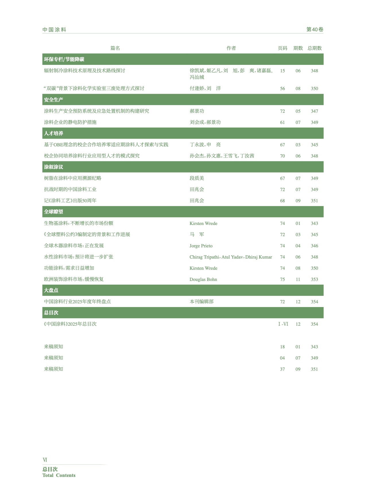 Ⅰ-Ⅵ 《中國涂料》2025年總目次