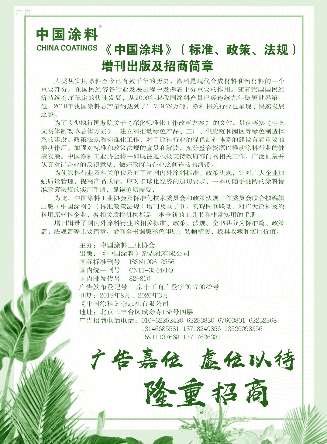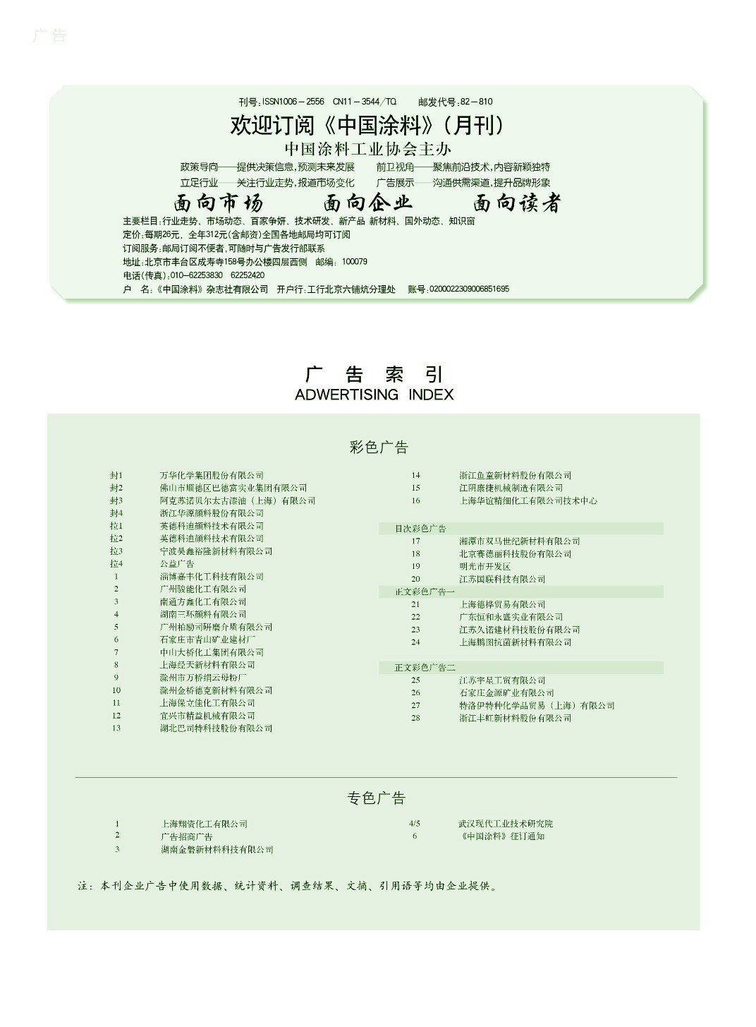 上海翔資、廣告招商、湖南金磐、武漢現代工業技術研究院、《中國涂料》征訂通知