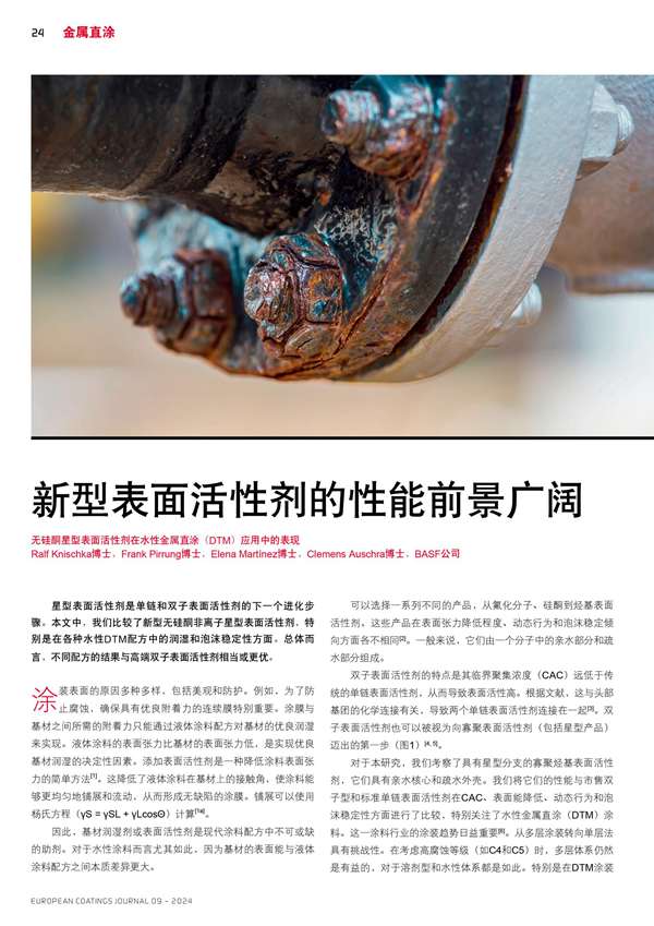 無硅酮星型表面活性劑在水性金屬直涂(DTM)應用中的表現