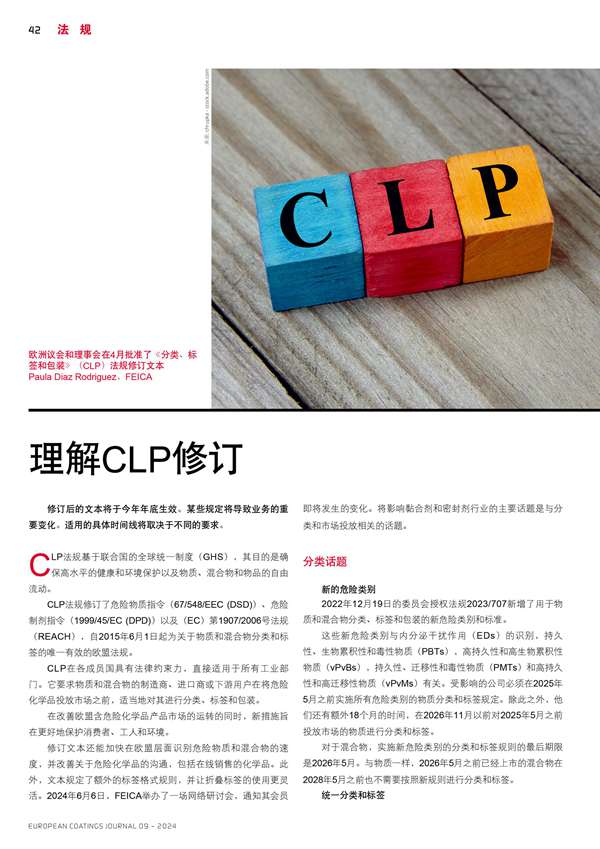 歐洲議會和理事會在4月批準了《分類、標簽和包裝》(CLP)法規(guī)修訂文本