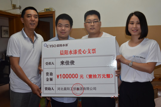 “善心點(diǎn)點(diǎn)匯流成江”,在晨陽水漆參與的公益活動(dòng)中,資助來佳俊只是一個(gè)小小的縮影。無論是災(zāi)區(qū)援建、扶貧幫困還是支持“美麗鄉(xiāng)村”建設(shè),晨陽水漆已累計(jì)支出善款超三千萬元,其中用于教育事業(yè)的投入占千萬元,晨陽水漆也因此被政府授予“親民愛民先進(jìn)單位”。