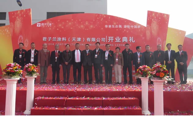 君子蘭涂料(天津)有限公司新廠開業(yè)典禮在2014年10月15日上午隆重舉行,來自中國(guó)涂料協(xié)會(huì)、木門協(xié)會(huì)和君子蘭集團(tuán)上海、成都、廣東等分公司君子蘭人歡聚一堂、共襄盛舉,共同慶祝君子蘭涂料(天津)有限公司隆重開業(yè)。