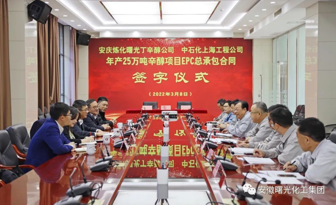 3月8日,安慶煉化曙光丁辛醇化工有限公司年產(chǎn)25萬噸辛醇項目EPC總承包合同簽字儀式舉行。安徽曙光化工集團黨委書記、董事長余永發(fā),中石化上海工程公司黨委書記、董事長張新明出席簽字儀式。安慶煉化曙光丁辛醇化工有限公司董事長陳長斌、中石化上海工程公司總會計師夏士東代表雙方簽訂項目EPC總承包合同。