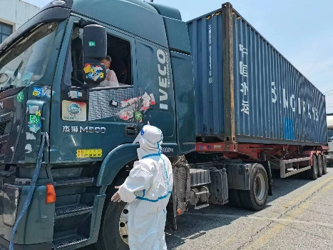 在方案的執(zhí)行中,同事們也走出自己的工作范圍,參與到整個(gè)運(yùn)輸?shù)牧鞒蹋柰ㄓ龅降摹捌款i”。從找供應(yīng)商,到根據(jù)政策要求找到合適的車輛和司機(jī),與全球業(yè)務(wù)服務(wù)部及工廠相關(guān)同事群策群力,準(zhǔn)備相關(guān)材料辦理手續(xù)、敲章,接車輛和司機(jī)、給貨車貼封條,帶司機(jī)去指定地點(diǎn)消殺、去倉庫裝卸貨物,再護(hù)送司機(jī)離開出發(fā)地等。