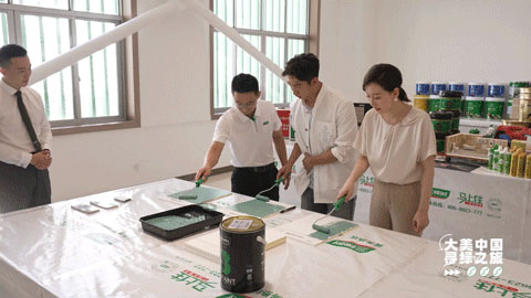 除了園區(qū)的生態(tài)之美,三棵樹的綠色硬實(shí)力也不容小覷。武大靖一邊和大家一起尋綠,一邊還開發(fā)了新技能,如愿當(dāng)了一回“粉刷匠”。