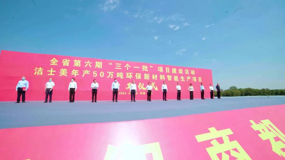 9月28日上午,河南省第六期“三個一批”項目建設活動集中開工儀式在潔士美環(huán)保新材料智能生產項目現(xiàn)場舉行。