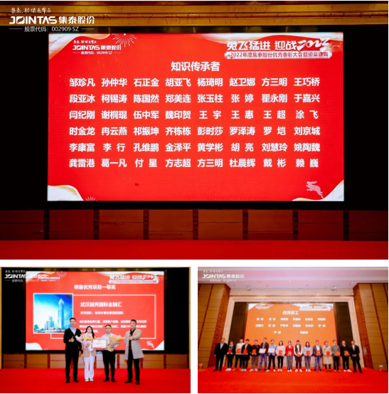 此次盛典,頒發(fā)了集泰之星、優(yōu)秀經(jīng)理人、優(yōu)秀辦事處、優(yōu)秀團隊、最佳進步團隊、優(yōu)秀黨務工作者、優(yōu)秀員工、科技進步獎、重大項目獎等10余個獎項。經(jīng)過多方綜合評估,評選出2022年度集泰之星7人、優(yōu)秀經(jīng)理人19人、優(yōu)秀辦事處1個、銷售部&渠道部優(yōu)秀團隊3個、銷售部&渠道部最佳進步團隊6個、制造中心年度優(yōu)秀團隊5個、制造中心最快進步獎2名、優(yōu)秀黨務工作者2名、優(yōu)秀員工142人、科技進步獎5個、銷售部&渠道部重大項目獎7個、知識傳承者77人、品牌推廣優(yōu)秀工作者43人等獎項。